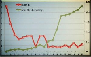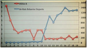 Eastman Chemical’s Acetate Fiber Division’s reporting increased two ways. The number of at-risk behaviors reported by their workforce in their behavioral safety program increased as did their near-miss reports in the same time period.